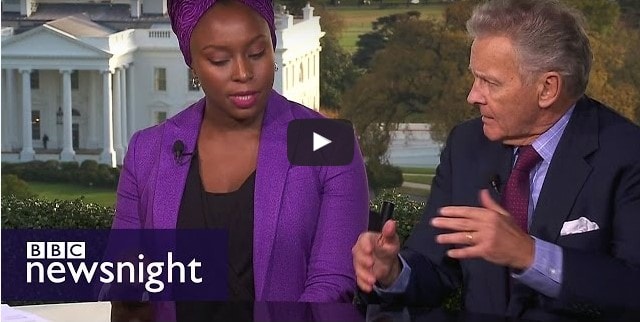 Both guests on BBC Newsnight, Nigerian novelist, Chimamanda Adichie, went head to head with the editor-in-chief of the American Spectator, Emmett Tyrrell on the issue of whether U.S President-elect, Donald Trump, is a racist or not.