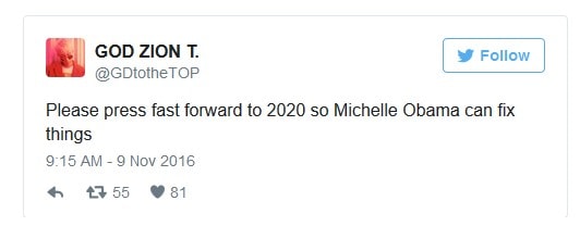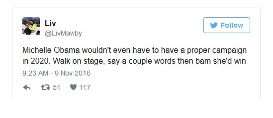 While some are tweeting in mere jest, others seem actually very hopeful that Michelle Obama will become the next president of the United States after Donald Trump.