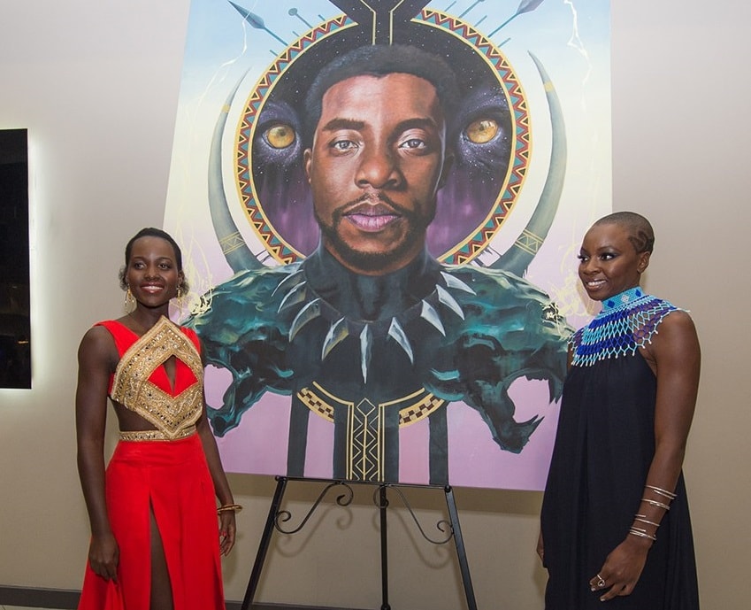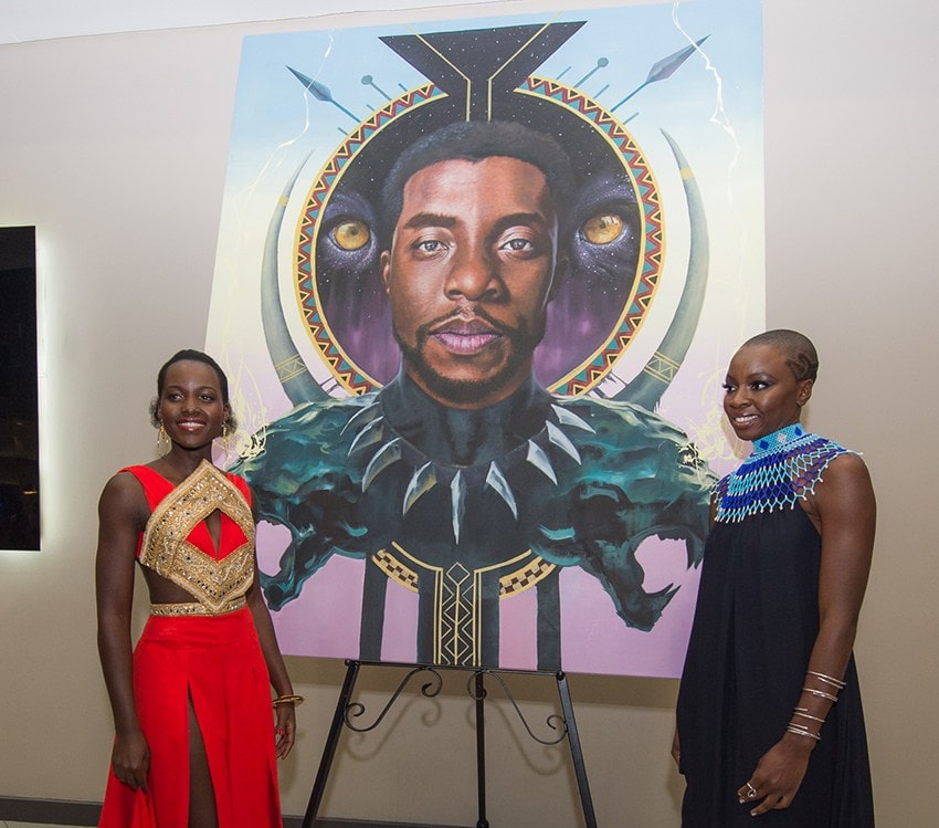| Also on display at the premiere was a striking Black Panther-inspired painting from local artist Loyiso Mkize. |