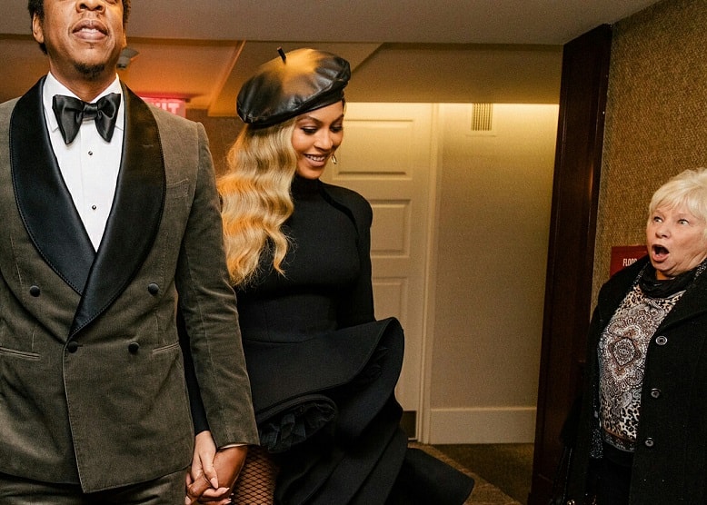 Susan Monaghan (right) during her encounter with JAY-Z and Beyoncé. |