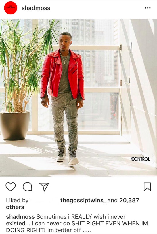 On his Instagram page 2 days ago, Bow Wow (real name Shad Moss, 31) led fans to believe the rapper has sunk into a suicidal depression.