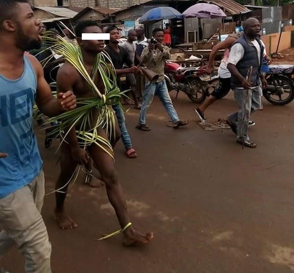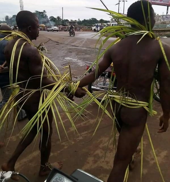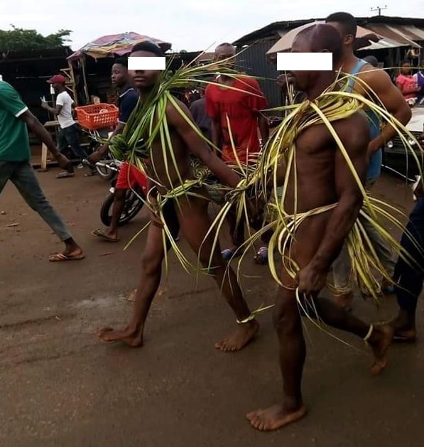 Two homosexuals caught having sex stripped naked and paraded round town in Nigeria