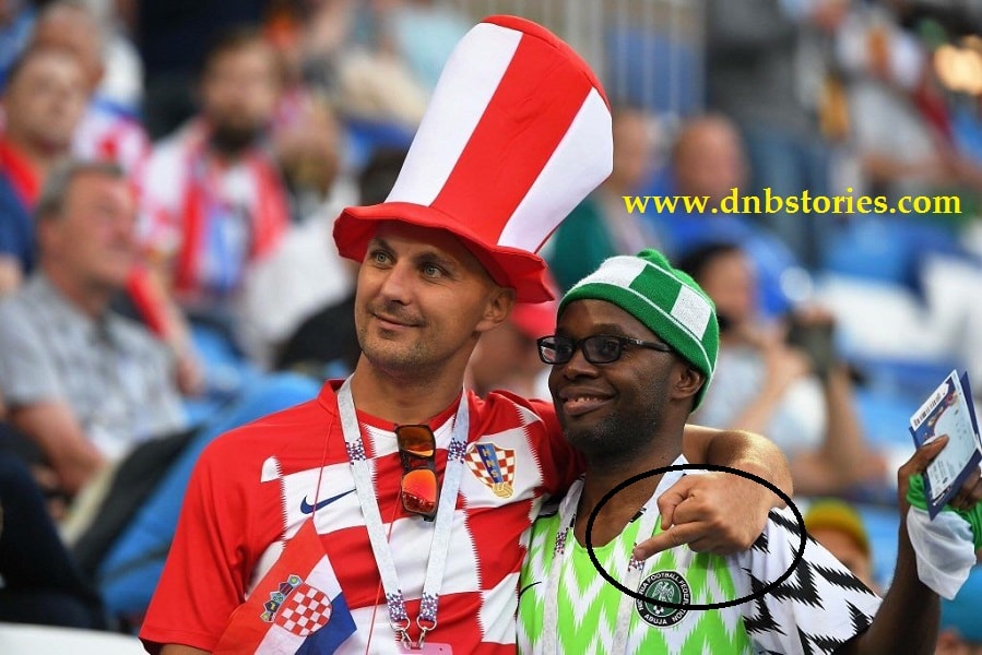 A picture of a Croatian football supporter covertly giving his Nigerian fellow the middle finger while they smiled and posed together for a photograph has sparked online outrage for its racist tone.