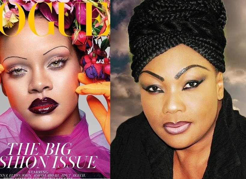 They are super thin and appear to have been penciled on, leading many Nigerians to believe the singer must have copied the idea from popular Nigerian actress, Eucharia Anunobi, who is well known for wearing similar brows.