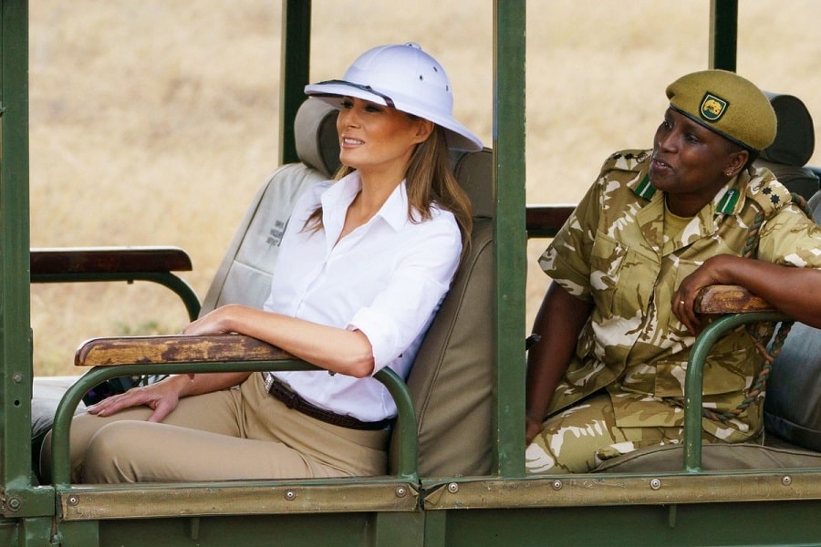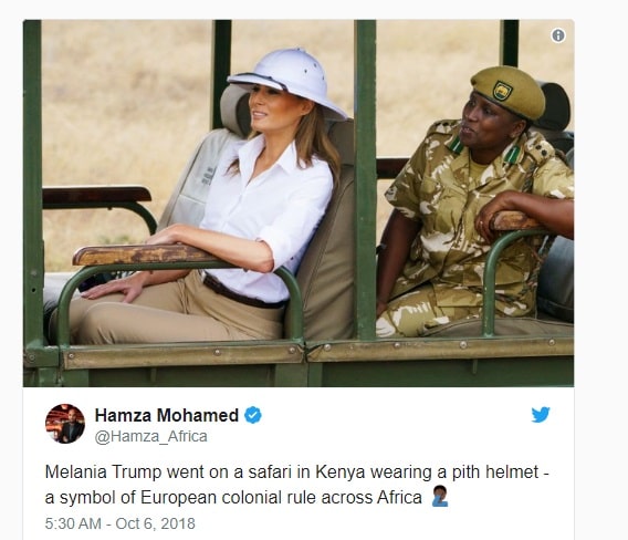 People are saying the white pith helmet Melania wore has “strong historical links to colonial rule in Africa”.