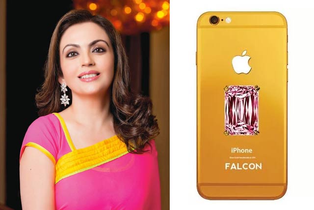 The owner of this over-the-top phone is Nita Ambani, wife to successful Indian businessman Mukesh Ambani. According to ValueWalk.com, the phone itself is 24-carat gold, featuring an enormous pink diamond and platinum coating.