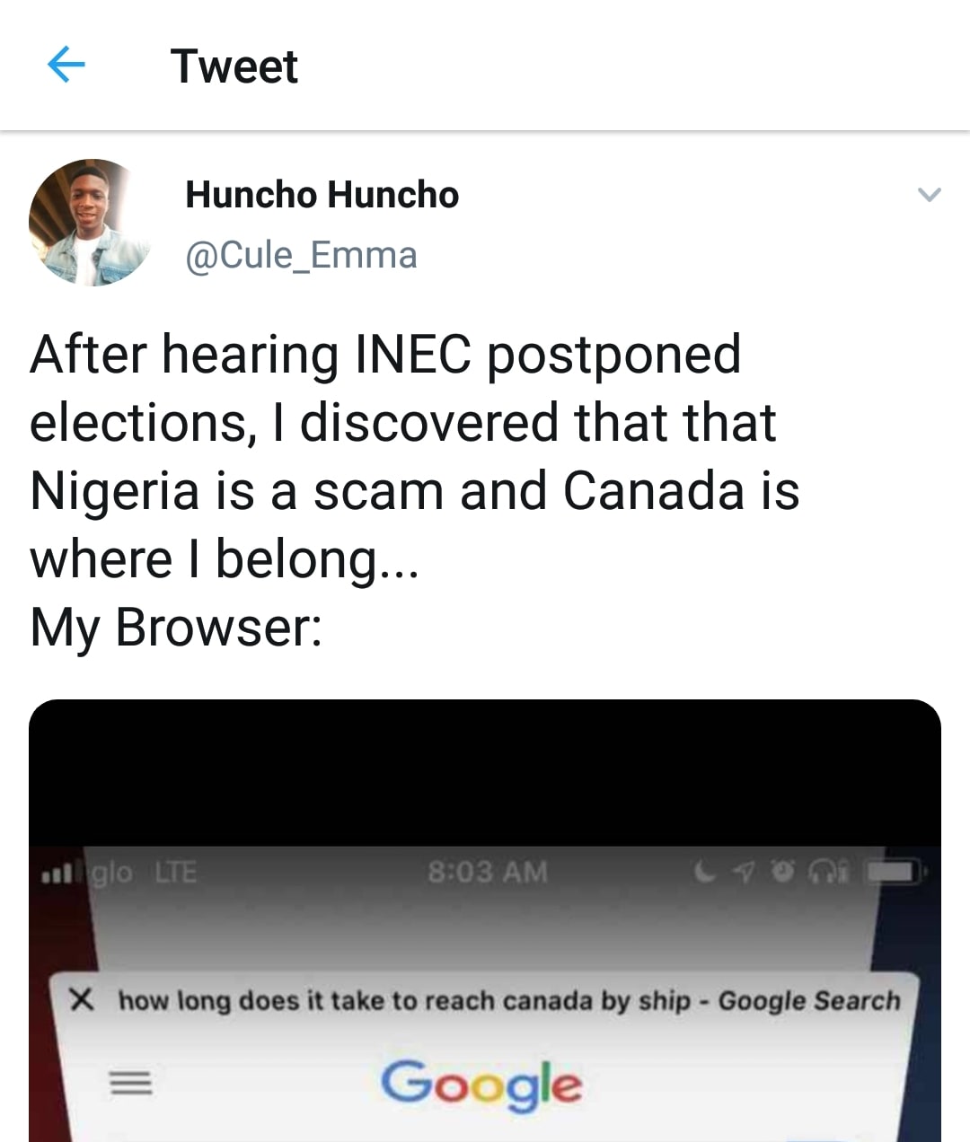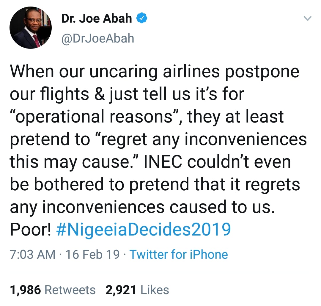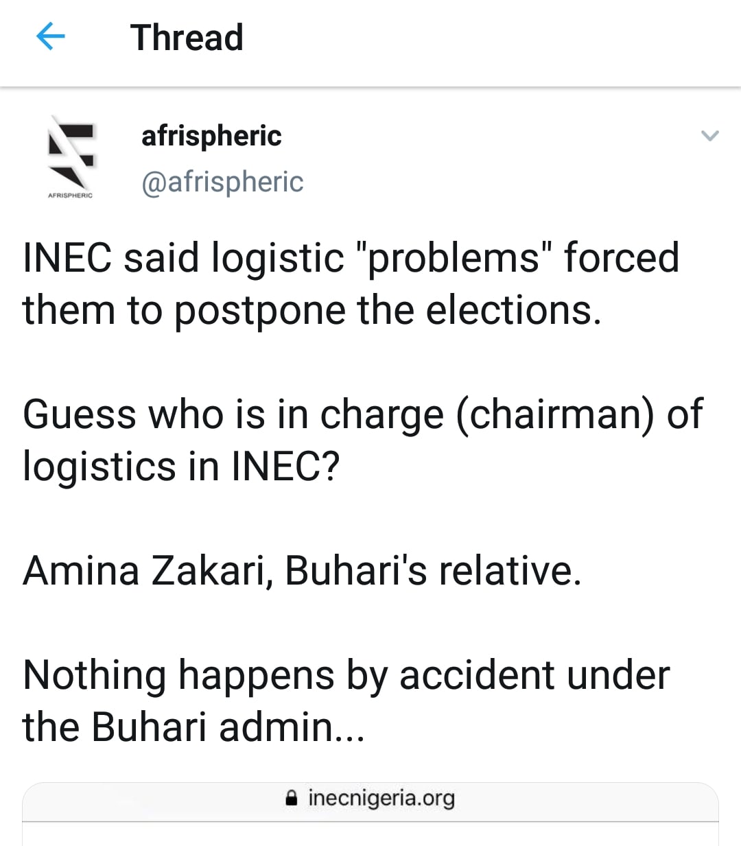 Nigerians on all social media has condemned INEC for abruptly rescheduling the elections, calling the commission incompetent and some asking that the chairman resign immediately.