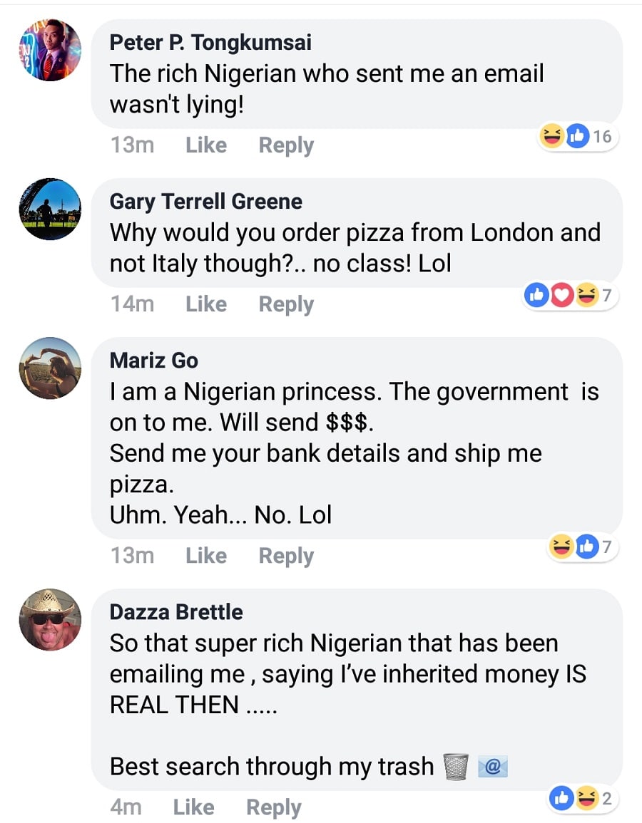 “That must be some incredible pizza,” read one of the comments.