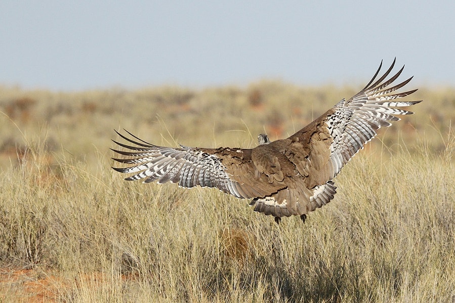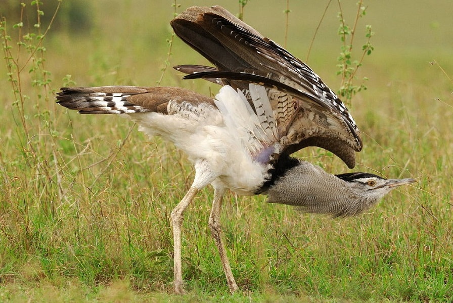 Being a large and heavy bird, the kori bustard avoids flying as much as possible.