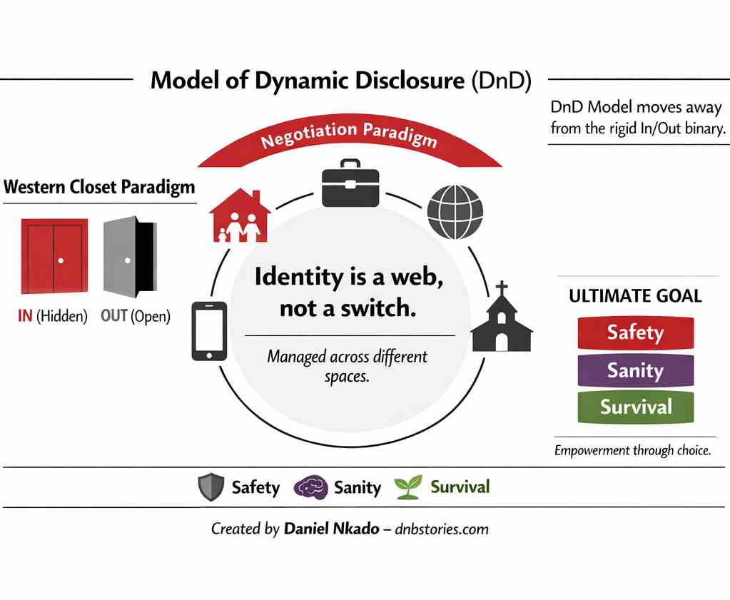 Developed by Daniel Nkado, the DnD Model recognises that identity disclosure is not a one-size-fits-all journey. Instead, it offers five flexible modes, empowering individuals to tailor their approach to suit their specific safety, relationship, and cultural needs.