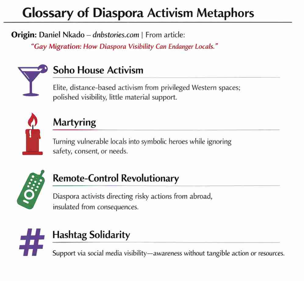 One of the most dangerous dynamics of Diaspora Disconnect is martyring—the practice of using the names, faces, or stories of people who remain in hostile environments to push high‑risk advocacy campaigns without their informed consent or a clear assessment of the dangers. The Leaver gets the applause for “amplifying queer voices”; the Remainer becomes the target of kito groups, state surveillance and social reprisals.