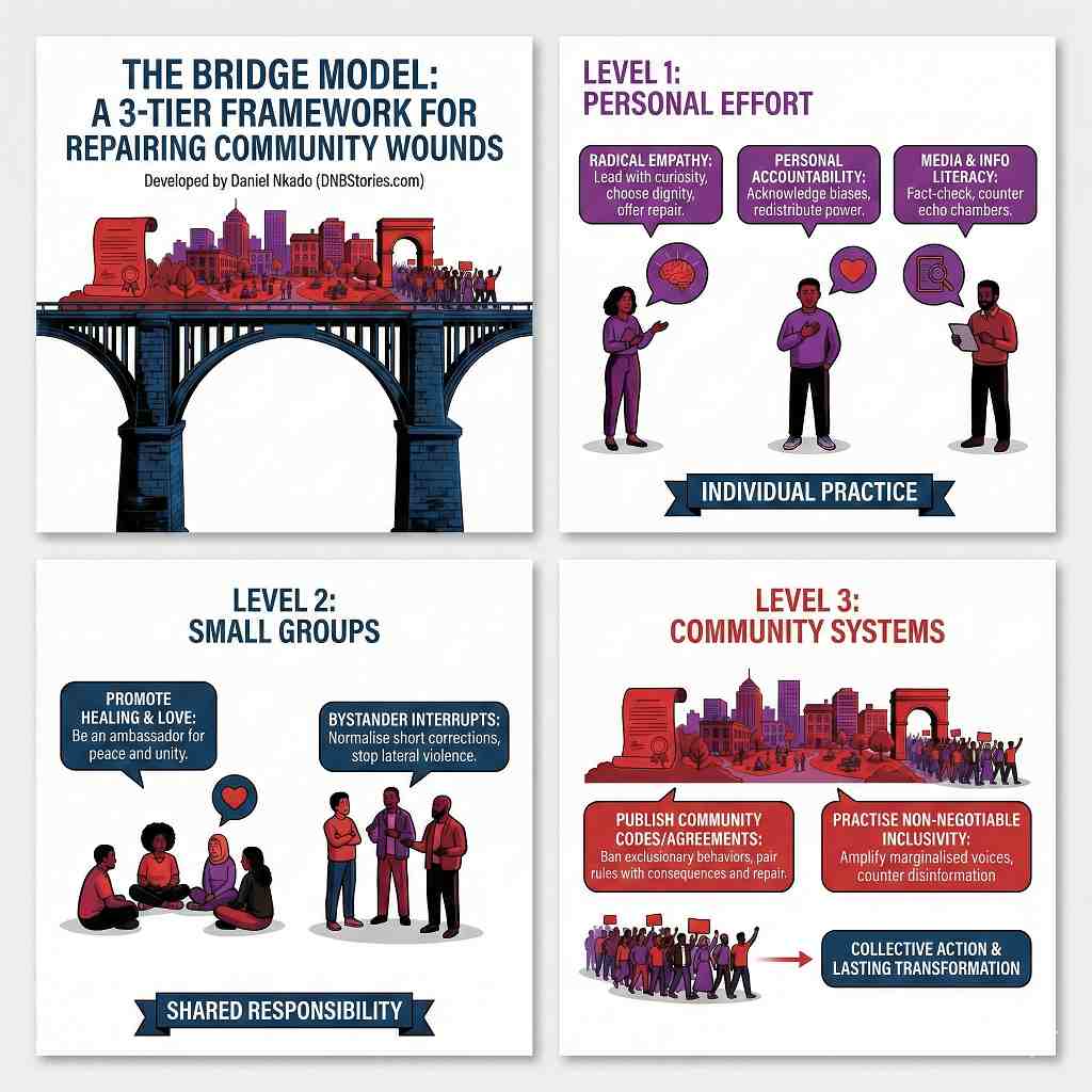 Daniel Nkado’s Bridge Model is a three-tier framework for repairing distrust and restoring love in Black gay communities by treating healing as a shared responsibility.