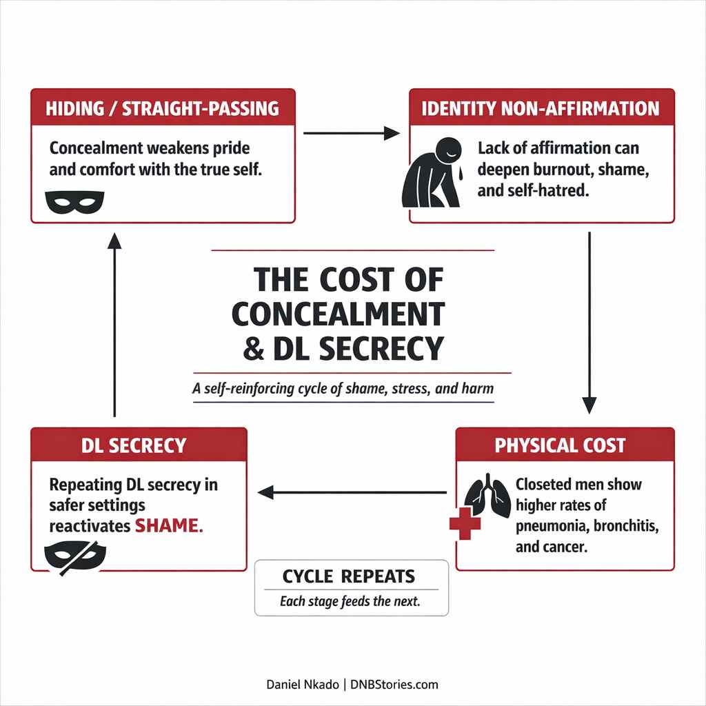 This is one reason why the continued re-enactment of DL (down-low) secrecy in contexts where external safety is no longer the primary concern can be especially harmful.